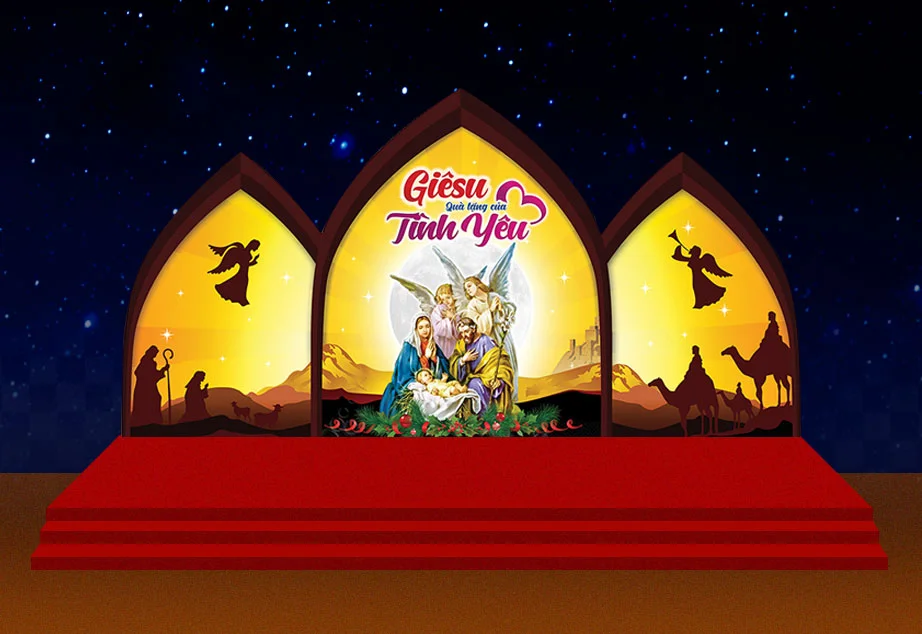 Xem chi tiết: https://giuseart.com/thiet-ke-phong-san-khau-giang-sinh-2018-giesu-qua-tang-cua-tinh-yeu/
